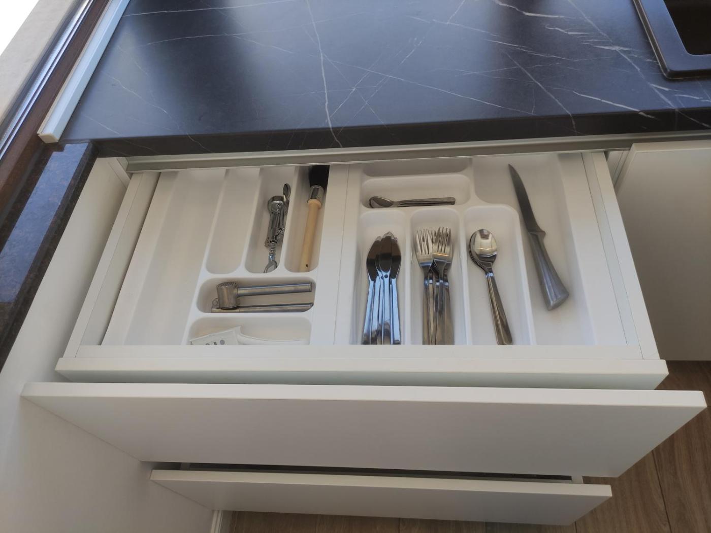One-Bedroom Apartment. Boasting a private entrance, this air-conditioned apartment features 1 living room, 1 separate bedroom and 1 bathroom with a walk-in shower and a bidet. Guests can make meals in the kitchen that has a stovetop, a refrigerator, kitchenware and an oven. The spacious apartment features a washing machine, soundproof walls, a minibar, a flat-screen TV with cable channels, as well as sea views. The unit has 2 beds.