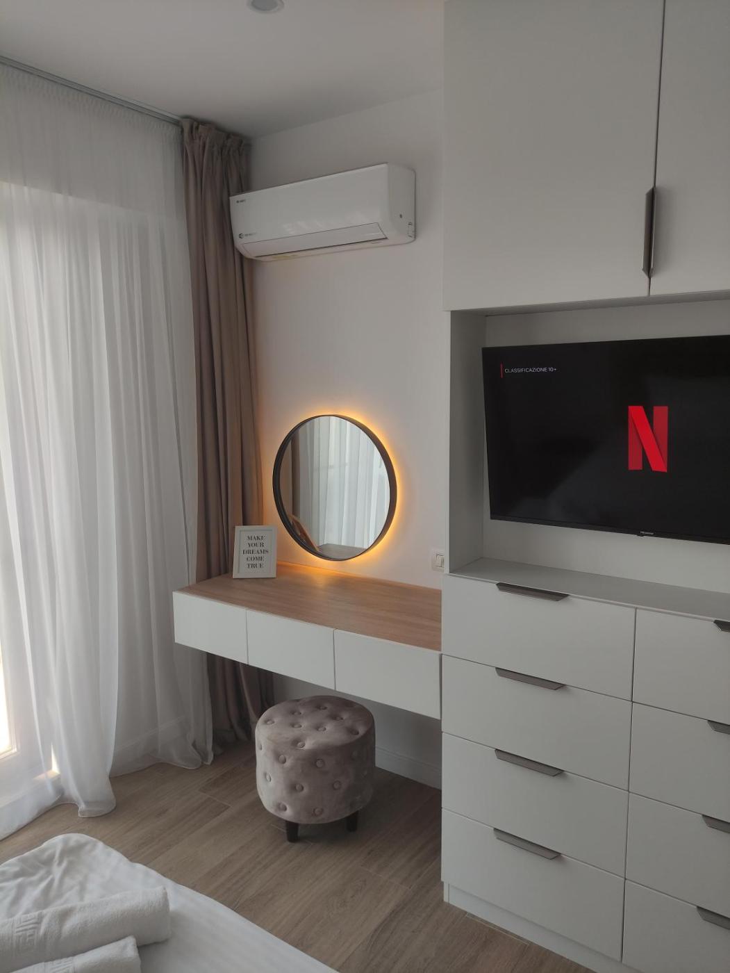 Boasting a balcony with lake views, a casino and free bikes, Aparthotel Black Sea can be found in Constanţa, close to Mamaia Beach and 1.7 km from City Park Mall. This apartment offers air-conditioned accommodation with a patio. The apartment also features free WiFi, free private parking and facilities for disabled guests.