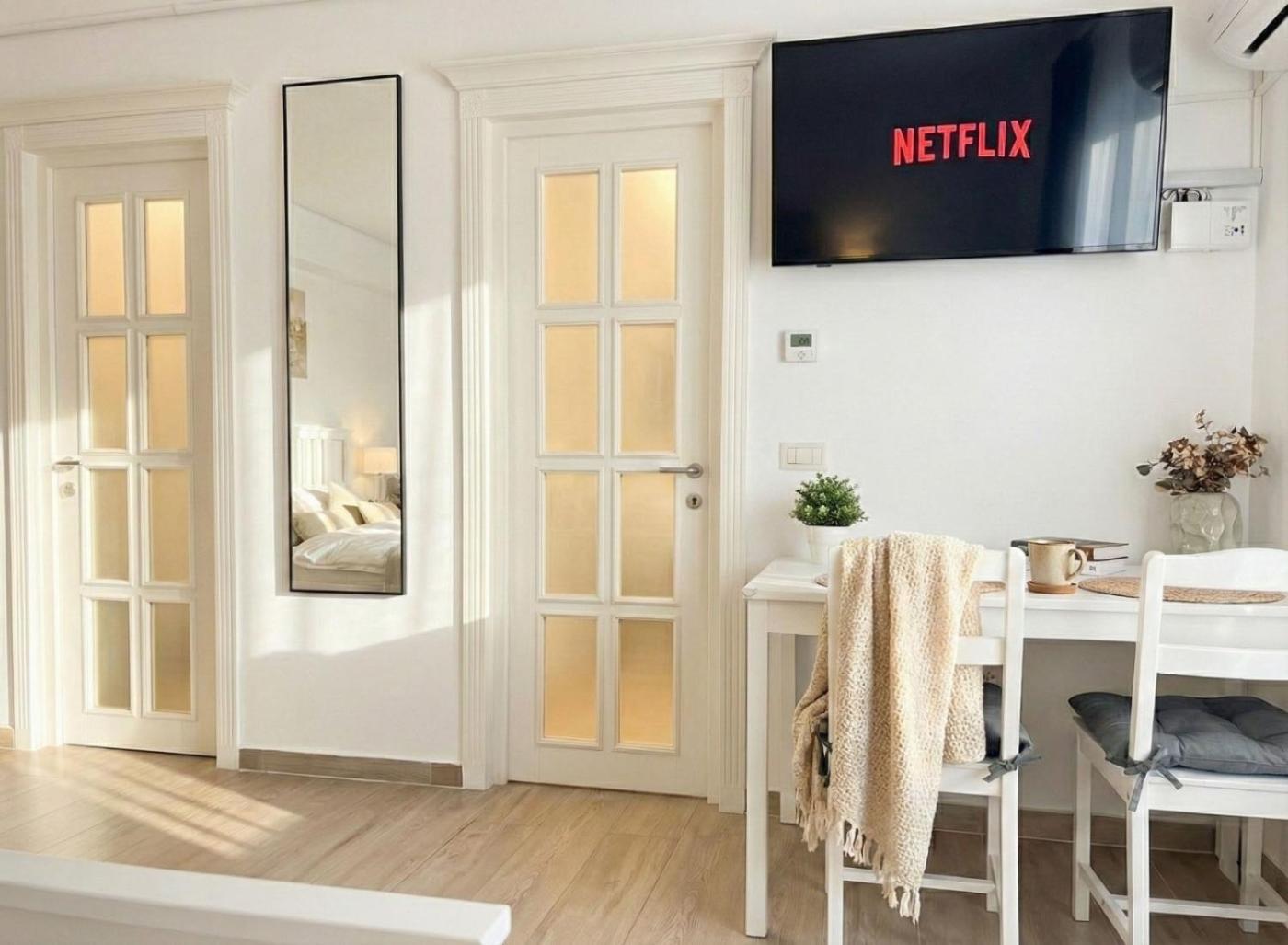 One-Bedroom Apartment. Meals can be prepared in the well-fitted kitchen, which features a stovetop, a refrigerator, kitchenware and an oven. This apartment is air-conditioned and has a seating area with a flat-screen TV, a washing machine, soundproof walls, a tea and coffee maker, as well as a dining area. The unit has 1 bed.