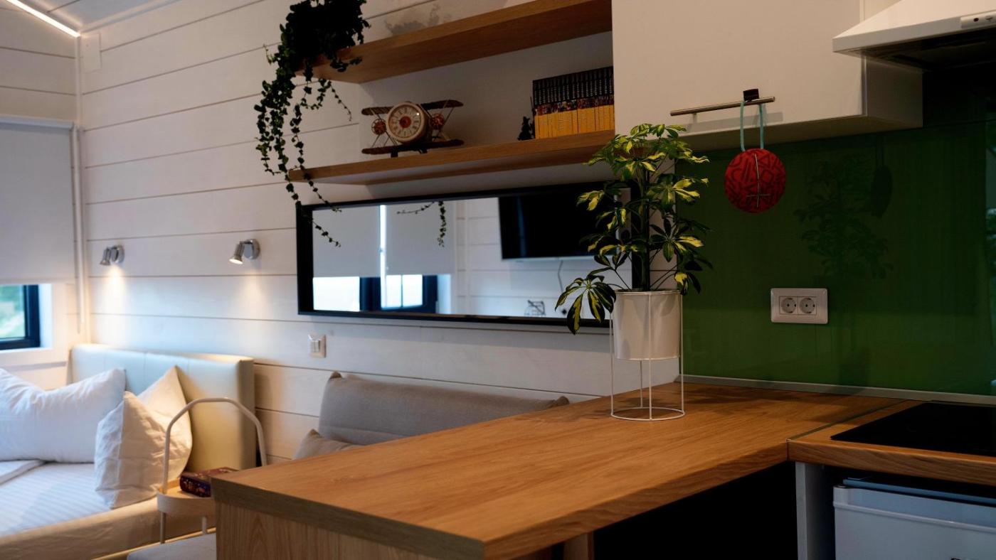 Mobile Home. Featuring a private entrance, this air-conditioned mobile home consists of 1 living room, 1 separate bedroom and 1 bathroom with a shower and a hairdryer. Guests will find a stovetop, a refrigerator and kitchenware in the kitchenette. The mobile home also offers a barbecue. Boasting a terrace with garden views, this mobile home also provides a coffee machine and a flat-screen TV with streaming services. The unit offers 1 bed.